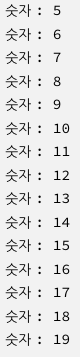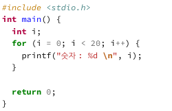 이후 반복할때마다 1씩 i값이 증가하고 i값이 20보다 작을 때까지 반복문이 반복되는 구조이다.