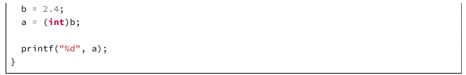 이런식으로 강제 형 변환 즉 캐스팅을 하게되면 경고 메세지는 출력되지 않습니다. 즉, ('바꾸려는 형) 변수이름' 형태로 캐스팅을 할 수 있는 것이죠.