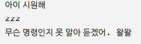 이처럼 3가지 명령에 대해 반응하고 3가지 명령 외에 명령은 "무슨 명령인지 못 알아 듣겠어" 라고 강아지가 이야기를 합니다.